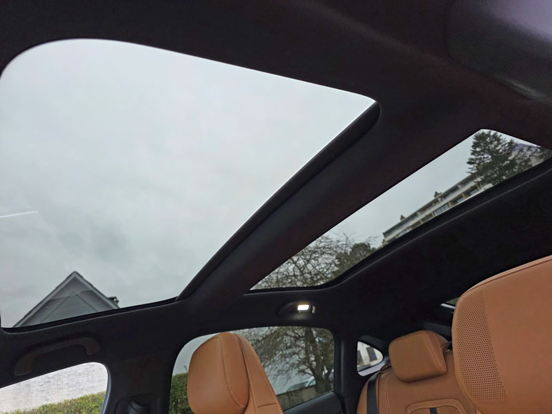 en lille skærm ved bagsæderne, panoramatag med